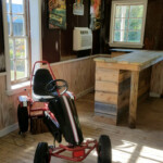 Our grooms cottage features a foosball table, cable TV, front and back porches, full bathroom and a handsome built in bar. The cottage is the perfect place to get ready after a day of on- site fishing or just relaxing with your groomsmen.