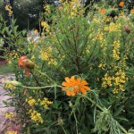 This garden featuring purple salvias, red grasses, zinnia's, and pink flowers is always humming with activity